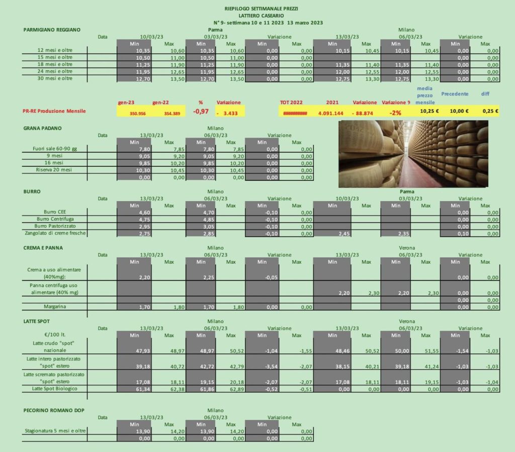 PARMIGIANO REGGIANO – Parma 10 marzo 2023 – A Parma i prezzi si sono stabilizzati. A Milano i prezzi non mutano.