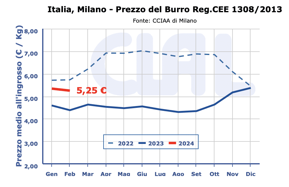 BURRO E PANNA – Alla Borsa Merci di Milano i listini del burro hanno ripreso a salire. La crema cede altri 4 cent. Alla borsa di Parma lo zangolato cede 5 cent€ come alla Borsa di Reggio Emilia. Alla Borsa Veronese la panna cede diversi centesimi. Margarina stabile.