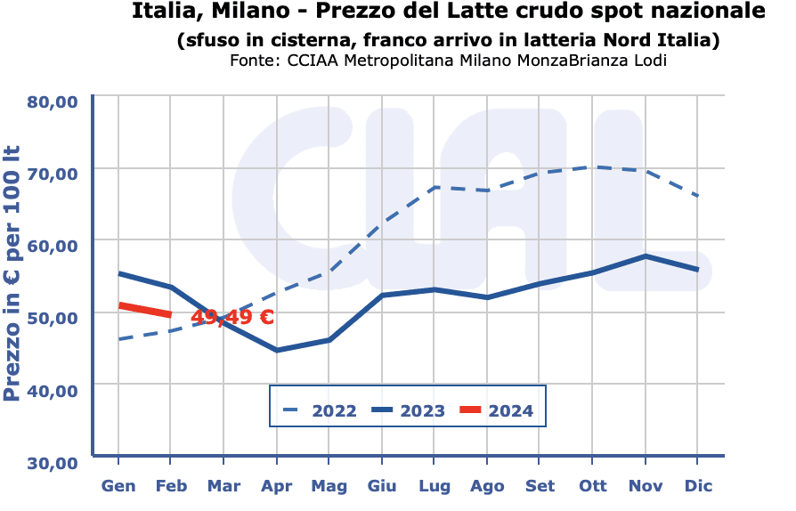 Latte crudo spot Nazionale 47,94 48,97 (-) 46,91 47,94 (-)