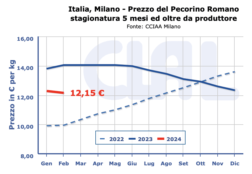 PECORINO ROMANO DOP – Milano 19/2/2024 novembre 2023 – A Milano il listino è stabile.