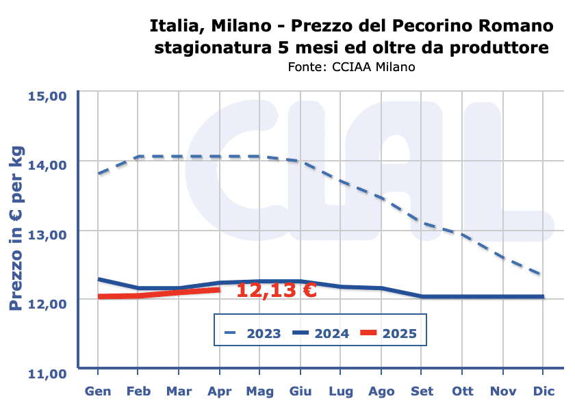 PECORINO ROMANO DOP – Milano 14/4/2025 – A Milano i listini sono stabili dopo il recupero di 5cent della scorsa settimana.