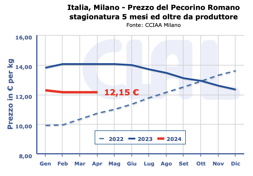 PECORINO ROMANO DOP – Milano 29/4/2024 – A Milano il listino tornano in fase stabile.