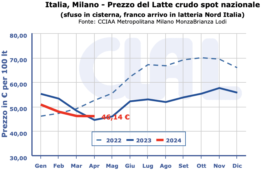 Latte crudo spot Nazionale 44,33 45,36 (-) 44,30 44,85 (-)