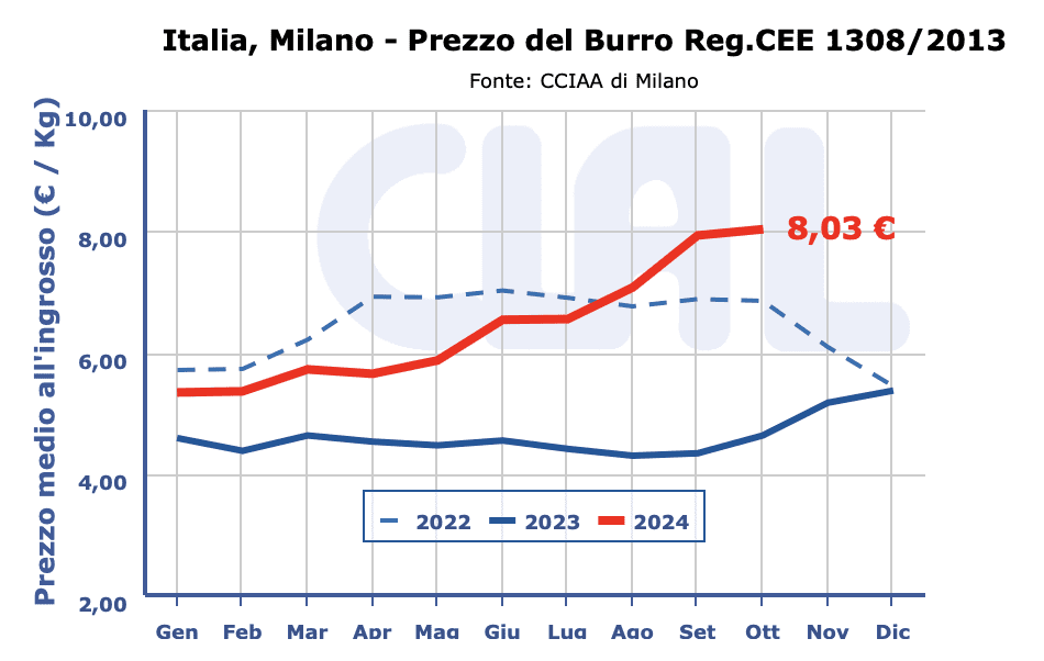 MARGARINA Settembre 2024: 1,45 – 1,55 €/kg (=)