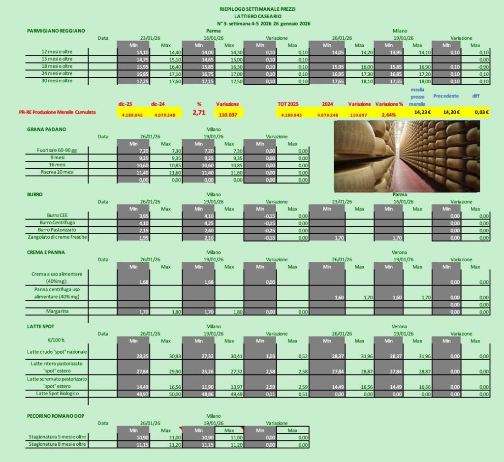 GRANA PADANO– Milano (26/1/2026) – Grana Padano: Ancora Stabile