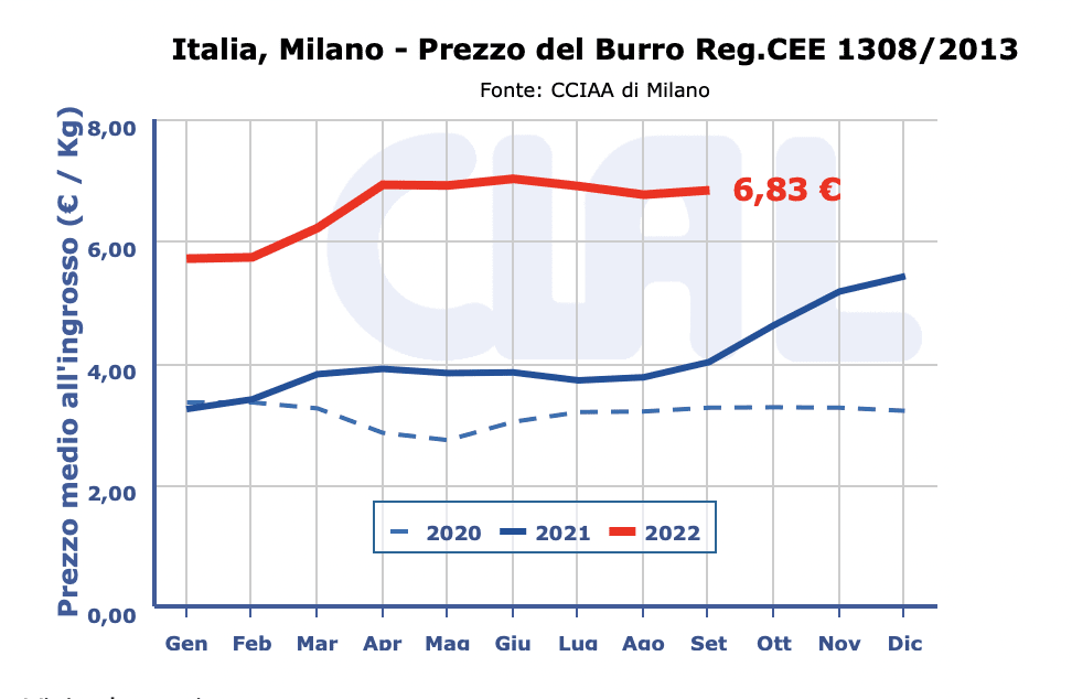 BURRO E PANNA – Alla Borsa Merci di Milano i listini del burro sono stabili. La crema anch’essa cresce. Alla borsa di Parma il listino dello zangolato ha recuperato 7 cent , seguendo l’indirizzo della Borsa di Reggio Emilia. Borsa Veronese in lieve risalita. Margarina stabile.