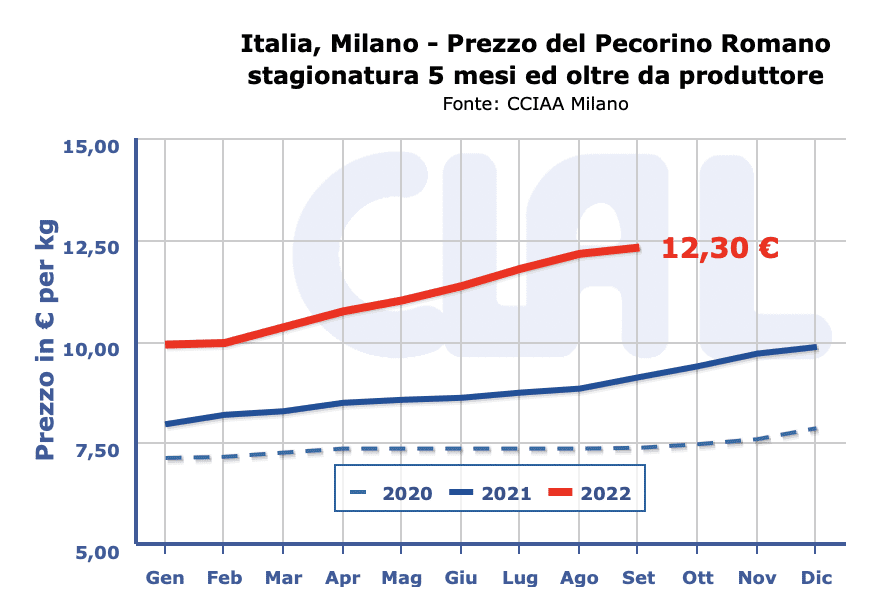 PECORINO ROMANO DOP – Milano 19 settembre 2022 – A Milano il prezzo torna a salire recuperando ulteriori 20 centesimi.