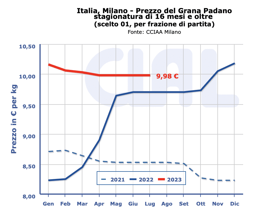 GRANA PADANO– Milano (03/07/2023) – Il Grana Padano è ancora stazionario.