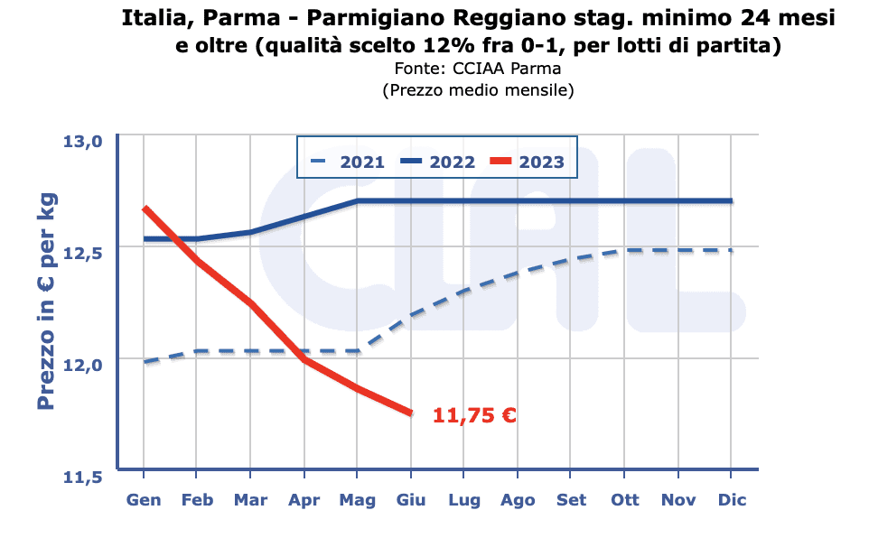 PARMIGIANO REGGIANO – Parma 30 giugno 2023 – A Parma si è arrestata la discesa dei prezzi.