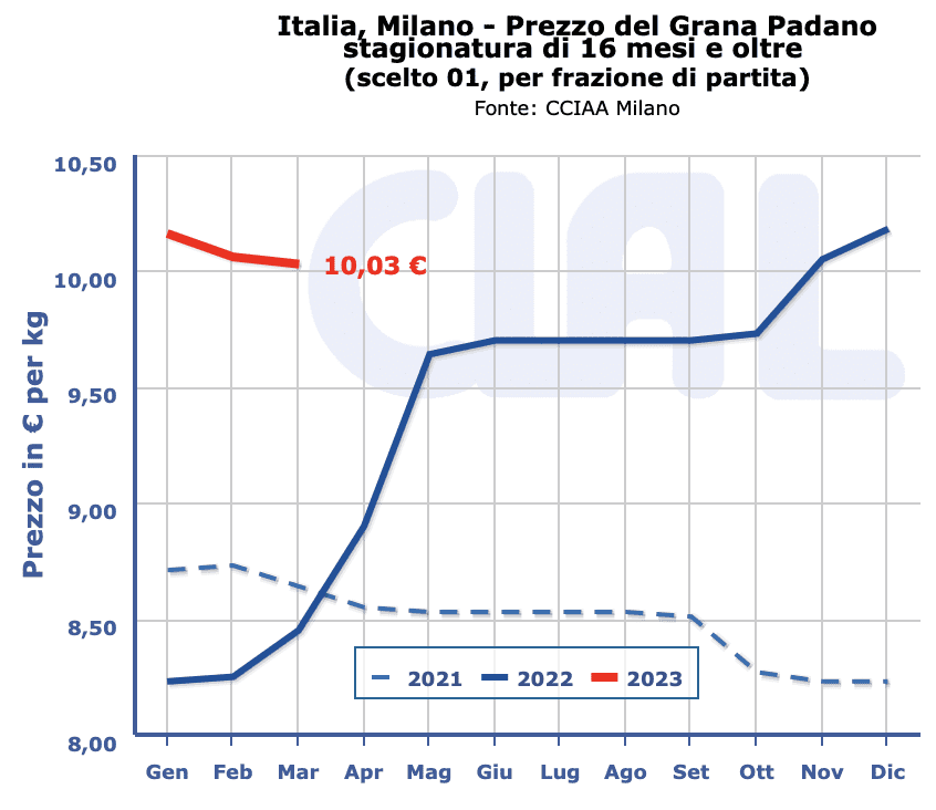 GRANA PADANO– Milano 17 aprile 2023– Il Grana Padano ha preso a discendere