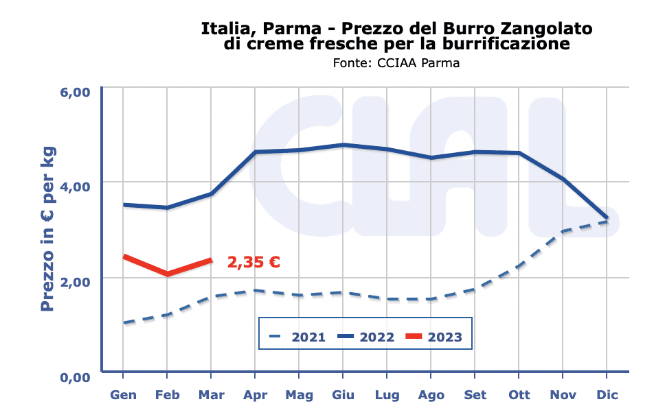 BURRO ZANGOLATO: 2,35 – 2,35 €/kg.