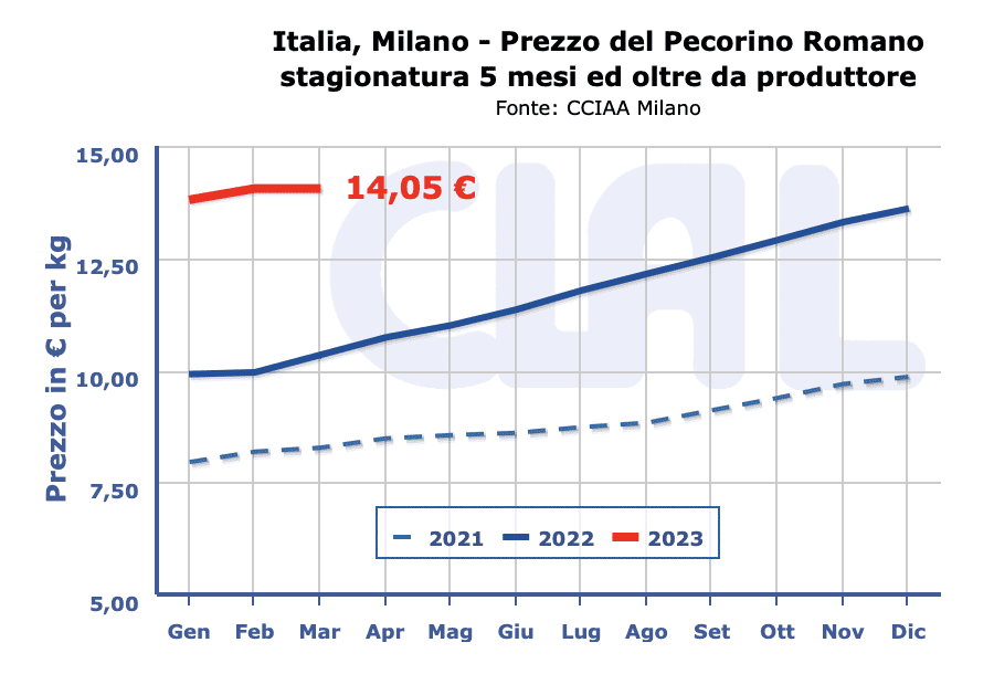 PECORINO ROMANO DOP – Milano 3 aprile 2023 – A Milano il prezzo resta in pausa per la sesta settimana consecutiva.