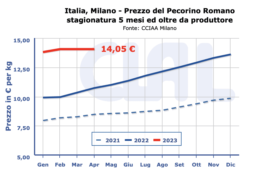 PECORINO ROMANO DOP – Milano 3 aprile 2023 – A Milano il prezzo resta in pausa per la sesta settimana consecutiva.