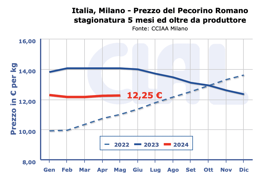 PECORINO ROMANO DOP – Milano 06/5/2024 – A Milano il listino tornano in fase stabile.