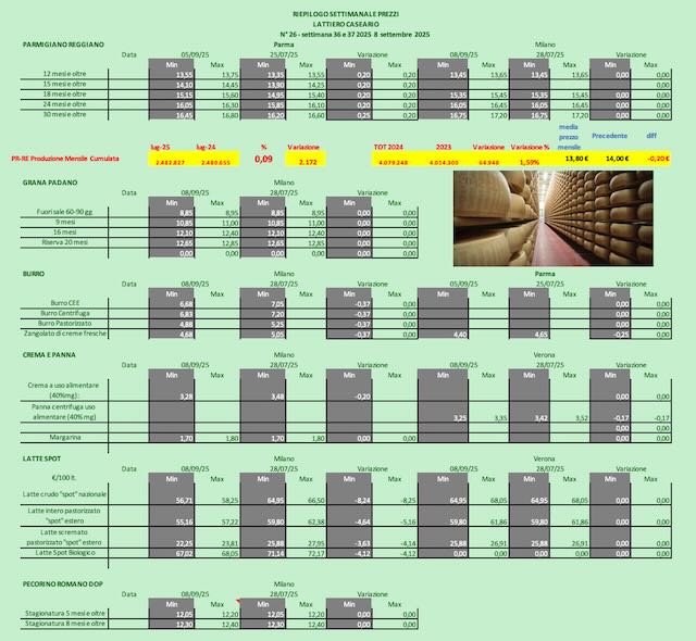 PARMIGIANO REGGIANO – Parma 8/9/2025 – A Parma i listini hanno un nuova impennata e altrettanto alla borsa milanese che registra un altro sensibile rimbalzo.